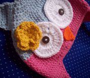 Tem uma peça na Tricolícia que se chama Gorro Corujete, a primeira coruja que fiz, composta das cores rosa chiclete, azul bebê e amarelo eu não faço ideia de quantos gorros desse já fiz em 5 anos, no mínimo uns 300!!!