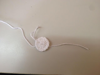 Agora é só puxar esse fiozinho aí do círculo e preenchê-los com os pontos altos faltantes, depois feche com um ponto baixíssimo na 3ª correntinha do primeiro ponto de base, e prontchenho!!!