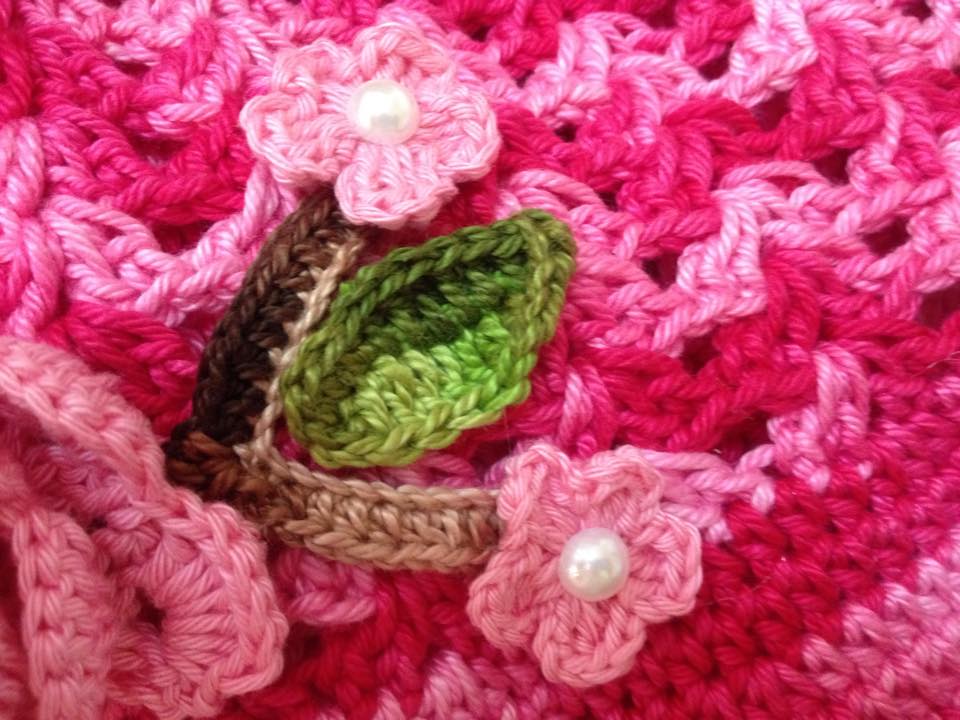4ª carreira: Dentro das correntinhas dos V da carreira anterior faça: (2p.a. - 2 c. - 2 p.a.) e nos intervalos dos leques faça: 1 p.a. - 2 c. - 1 p.a. Na foto abaixo fica mais fácil o entendimento.